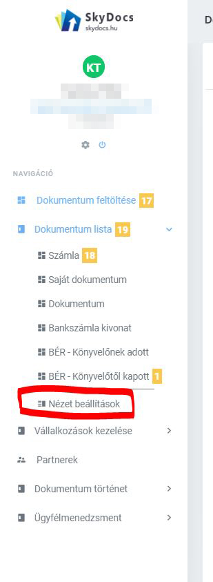 A megjelenő meta-adatok oszlopsorrendjét a jobb oldali  Navigációs menü, Dokumentum lista, Nézet beállítások menüpontja alapján, listánként sorrendbe lehet rendezni.